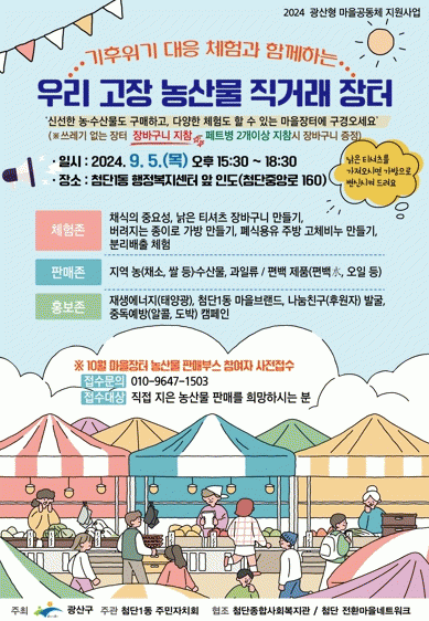 도·농 상생마을장터는 2024 광산형 마을공동체 지원사업으로 지역 농가와 연결해 주민에게 신선한 식재료를 저렴하게 구매할 수 있는 기회를 제공한다.