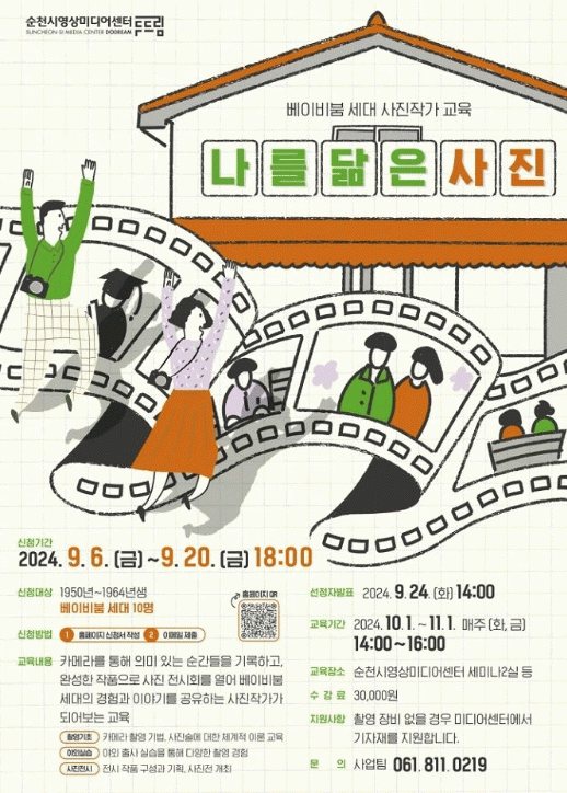 순천시영상미디어센터 관계자는 “이번 베이비붐 세대 사진작가 교육이 개인의 이야기를 시각적으로 재조명하는 계기가 되기를 바란다”며, “한 세대의 감정과 경험이 담긴 다양한 사진 작품을 통해 세대 간의 공감과 소통이 이루어지길 기대한다”고 전했다.
