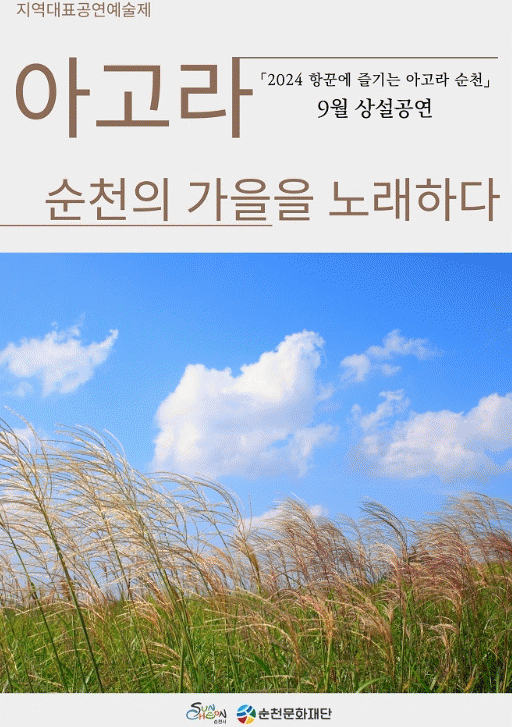 ‘2024 아고라 순천’은 야외에서 음악 듣기 가장 좋은 계절인 9월을 맞아 '아고라! 순천의 가을을 노래하다'를 주제로 시민들과 순천을 찾는 관광객에게 가을 감성을 저격하는 풍성한 공연을 진행할 예정이다.