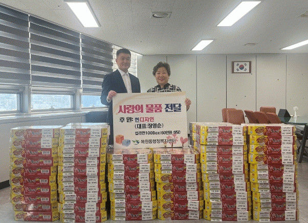 현디자인은 매년 정기적으로 어려운 이웃에 컵라면을 기탁하여, 꾸준히 관심을 갖고 사랑나눔을 실천하여 관내 저소득층 및 취약게층을 돕고 있다.