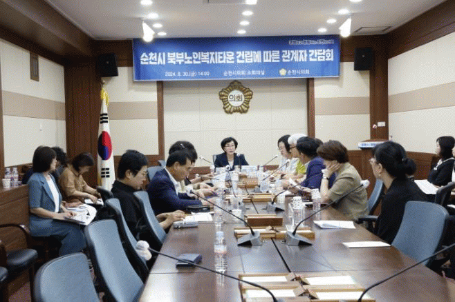 이날 간담회는 행정자치위원회 소속 의원들과 순천시 노인요양시설연합회 대표자들을 비롯한 관계부서 공무원 등이 참여한 가운데 북부노인복지타운 건립으로 인한 노인요양시설 운영자들의 애로사항을 듣고 주요 현안들에 대해 공감대를 형성하기 위해 마련됐다.