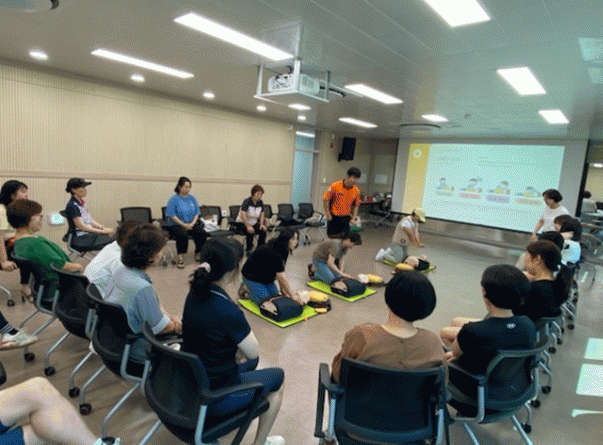 주요 교육 내용은 ▶심폐소생술(CPR) 및 자동 심장 제세동기(AED) 사용법 ▶이물질에 의한 기도 폐쇄 응급처치(하임리히법) ▶화재 발생 시 대피요령 등으로 이론과 실습 교육을 병행했다.