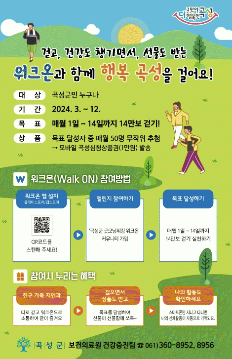 '곡성군 굿모닝 워킹 워크온'은 건강한 지역사회 조성과 주민 건강증진을 위해 준비된 프로그램이다.