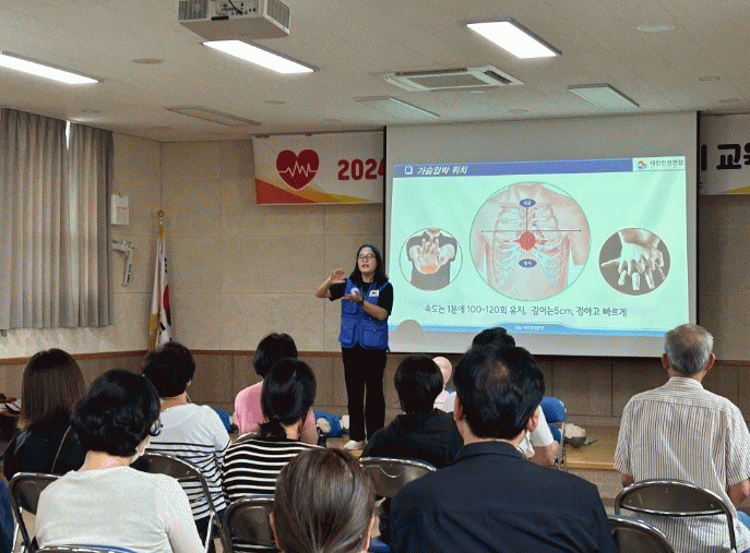 주요 내용은 ▲기본소생술 이론 및 실습 ▲자동심장충격기 적용 및 사용 방법 ▲응급처치 시 행동 요령 ▲가슴 압박 소생술 ▲이물질에 의한 기도 폐쇄 응급처치 등 이론과 실습 교육을 병행해 실시했다.