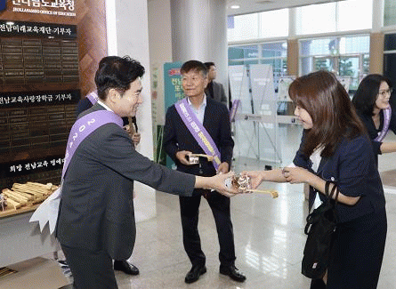 김대중 교육감은 9월 3일 오전 출근길에 청사 1층에서 ‘효도손’을 직접 건네는 행사를 통해 출근하는 직원들과 양성평등의 마음을 나눴다.