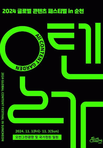 한편, '글로벌 콘텐츠 페스티벌 in 순천(부제 :올텐가!)'은 올해 11월 1일부터 11월 3일까지 정원과 원도심 일원에서 개막식, 유명 인사 토크콘서트, 비즈니스 마켓, IP 활용 전시·팝업, 야외 상영회 등 다양한 프로그램을 선보일 계획이다.