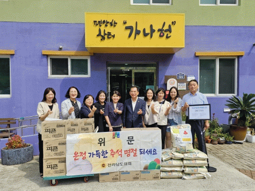 가나헌은 여수 화양면 소재 중증장애인 거주시설로 이날 위문은 추석을 맞아 따뜻한 온정을 나누고 더불어 살아가는 이웃 사랑의 마음을 전하기 위해 이루어졌다. 또한 이날 추석 위문품과 함께 지속되는 폭염에 건강하게 보낼 수 있도록 전라남도 폭염 위문품도 전달됐다.