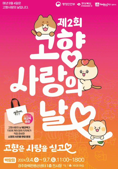 ‘제2회 고향 사랑의 날’ 행사는 행정안전부 주최로 오는 4일부터 7일까지 경주 화백 컨벤션센터에서 열린다.