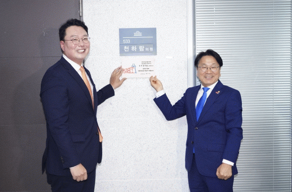 강 시장은 ‘국회, 광주의 날’ 이틀째인 3일 오후 서울 국회의원회관에서 개혁신당 천하람·이준석·이주영 국회의원과 환담하고, 의원실 입구에 감사현판을 함께 부착했다.