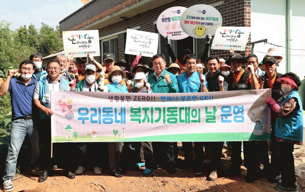 현재 복지기동대는 집수리 . 도배 등 각 분야 전문가를 비롯해 이장, 부녀회장, 자원봉사 회원 등 총 10개대로 구성되어 있으며, 민간 자원의 지속적인 발굴과 연계협력을 통해 지역 구석구석에 도움의 손길을 펼쳐갈 예정이다.
