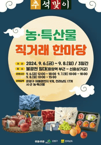 오는 10월 14일부터 16일에는 서울광장에서 22개 시군이 참여하는 2024 전남도 직거래장터 큰잔치를 성대하게 개최할 예정이다.