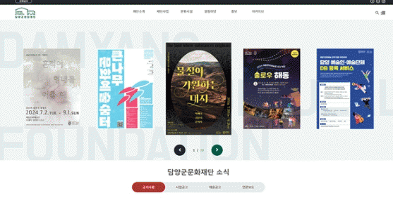 아울러 홈페이지 내 담양 예술인·예술단체 데이터베이스(DB) 등록 서비스 메뉴를 신설하여 지역 문화예술 네트워크를 구축하고, 관련 정보를 기반으로 향후 연계 사업을 추진할 예정이다.