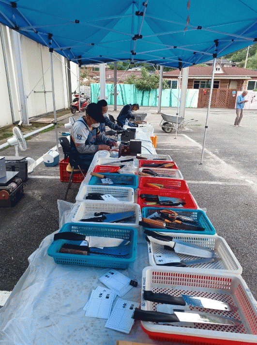 퇴직공무원이 주축이 되어 활동하는‘다림돌 봉사단’이 제공하는 칼갈이 서비스는 주민들 사이에서 가장 인기가 높다.