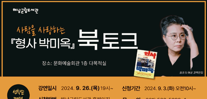 참가 신청은 2일부터 해남군립도서관 누리집을 통해 진행하며, 당일 현장 신청도 가능하다. 자세한 내용은 해남군립도서관(☎061-530-5890)으로 문의하면 된다.