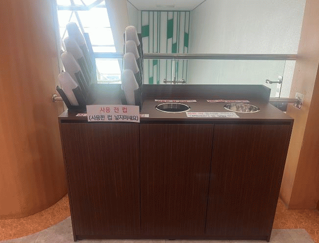 모두가 언제든 사용할 수 있도록 청사 내 층별로 다회용 컵 대여 및 반납함을 비치했으며 사용 후 반납하면 세척 후 재공급하는 방식으로 운영 시스템을 갖췄다.