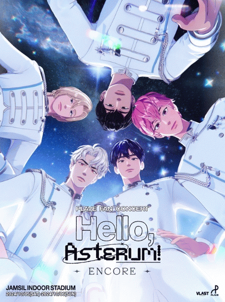 플레이브는 오는 10월 5,6일 양일간 잠실실내체육관에서 플레이브 팬 콘서트 ’헬로, 아스테룸!‘ 앙코르(PLAVE FAN CONCERT 'Hello, Asterum!' ENCORE)를 총 2회 개최하고 팬들과 만난다.