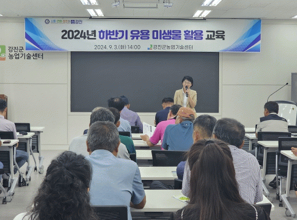 이번 교육은 (재)전남바이오진흥원의 구헌우 연구원을 강사로 초빙, 농업기술센터에서 공급하는 미생물 균종별 특성 및 활용방법에 대해 진행됐다. 교육은 이론뿐 아니라 현장 실증 사례와 질의응답 시간을 더해 농가들의 큰 호응 속에 마무리됐다.