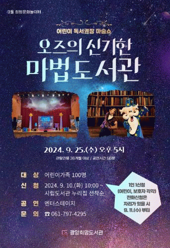 그리고 9월 독서의 달을 맞아 광양희망도서관은 어린이 독서권장 마술쇼 ‘오즈의 신기한 마법도서관’을 선보이게 됐다.