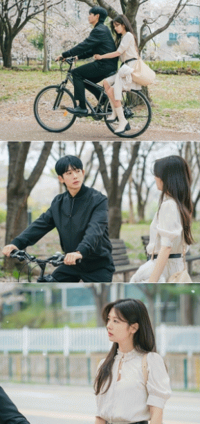 그런 가운데 공개된 사진은 흩날리는 벚꽃 아래 자전거를 탄 두 사람이 순정만화를 찢고 나온 듯한 그림 같은 비주얼로 시선을 사로잡는다.