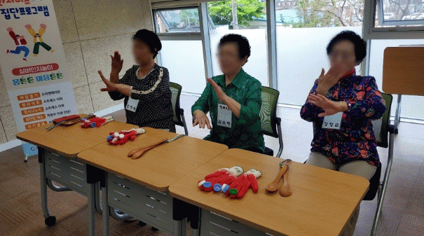 올해 신설된 ‘실버인지놀이’ 프로그램은 나무 숟가락과 막걸리 병을 이용해 신체를 움직이며 리듬을 느끼는 난타 활동으로, 신체적 건강을 유지하고 우울감을 해소할 수 있어 프로그램 참여자들에게 큰 호응을 얻었다.