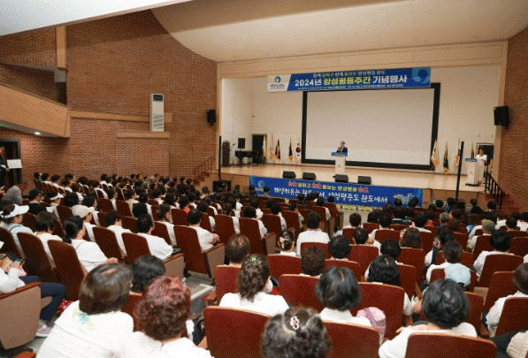 기념행사는 공연을 시작으로 여성단체 기수단 입장, 유공자 표창, 행복복지기금 전달, 헌장 낭독, 축사 순으로 진행됐다.