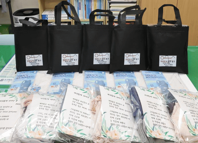 위생꾸러미에는 속옷과 양말, 세면도구 등으로 구성했다.