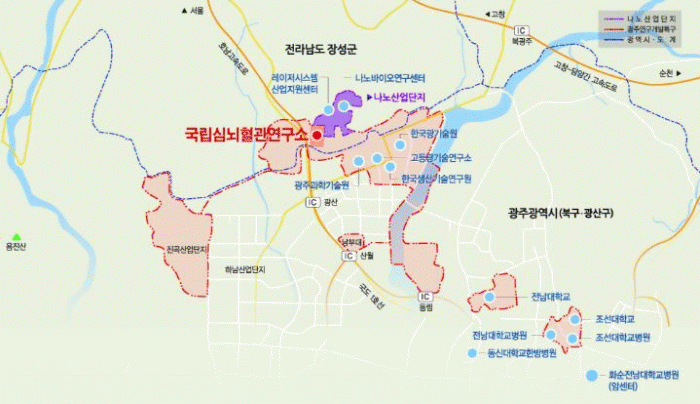 전남 장성 설립으로 충북 오송 생명과학단지, 대구 경북 첨단의료복합단지와 더불어 국가 보건의료 기반산업 3대 축을 형성하게 된다.