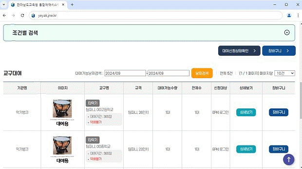 교과교육, 방과후학교, 학생오케스트라, 학생예술동아리 활동에 필요한 악기를 전라남도교육청 통합예약시스템에서 예약 신청해 이용할 수 있다.