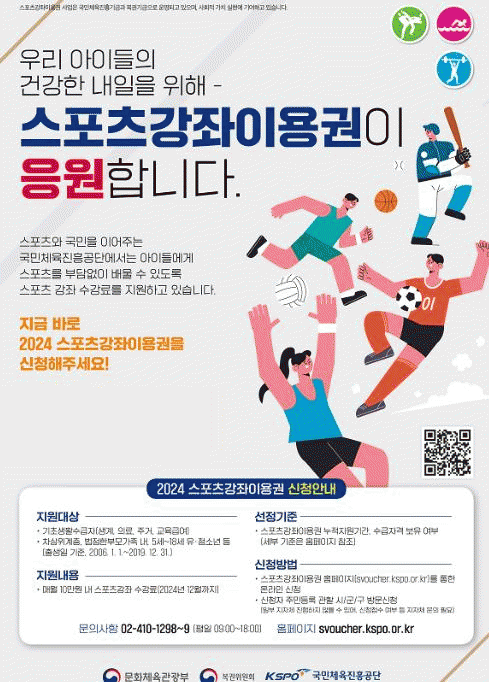 스포츠강좌 이용권 지원사업은 여가 스포츠 활동에 대한 공정한 기회를 제공해, 스포츠를 부담 없이 배울 수 있도록 수강료를 지원해 주는 사업이다.