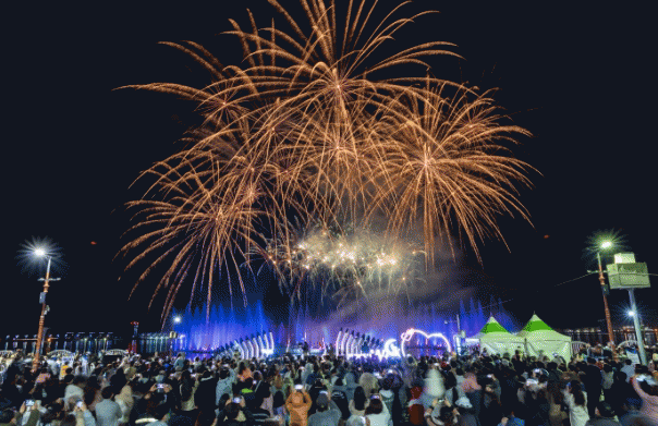 이후 케이팝에 맞춰 춤추는 음악분수와 화려한 불꽃이 어우러진 뮤직 불꽃쇼가 10여 분간 진행되며 목포 가을밤의 낭만을 관람객과 함께 나눈다.