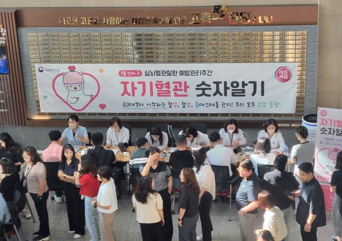 한편, 군 보건소에서는 9월 한 달을 심뇌혈관질환 예방관리 집중 기간으로 지정하고 관공서, 유관기관, 사업장, 사회복지시설, 마을경로당 등을 방문하여 지속적인 홍보 활동을 추진할 계획이다.