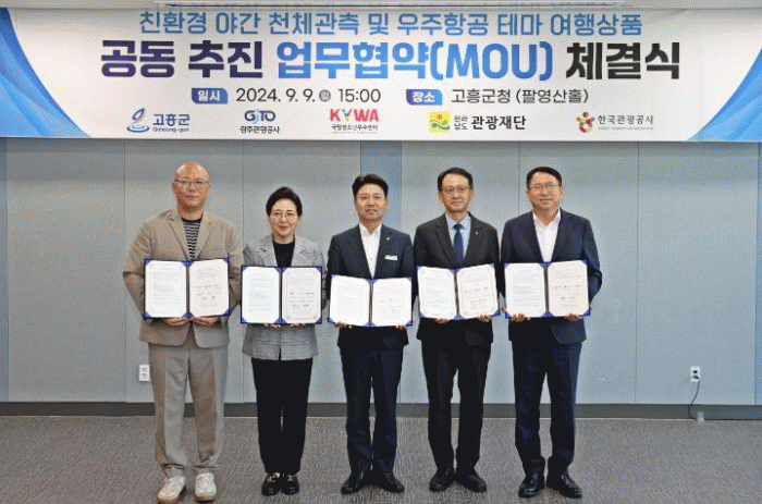 조대정 부군수는 “이번 업무협약을 통해 고흥군의 우주항공 및 천체관측 테마 여행상품 육성에 새로운 활력이 될 것으로 기대한다”고 말했다.