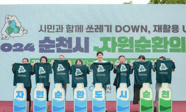이번 기념행사에서는 자원순환 문화 확산을 위해 활동 중인 다양한 시민의 모습을 담은 영상을 상영하고, 자원순환실천 유공자 표창, 자원순환도시 순천 선언문 낭독 및 에코 퍼포먼스를 진행했다.