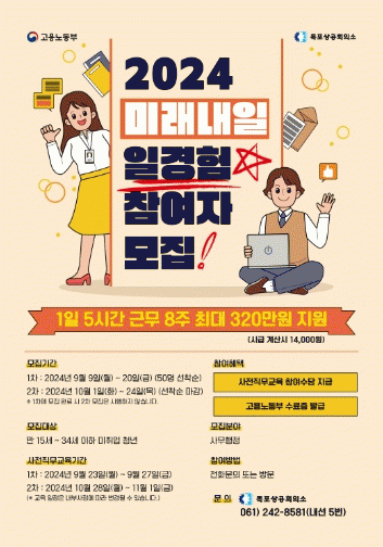 모집대상은 만 15세~34세 이하 미취업 청년이면 누구나 지원 가능하며 참여 청년에게는 1일 5시간 근무, 8주 최대 320만원을 지원하고 참여기업과 멘토에게도 수당을 지급한다.