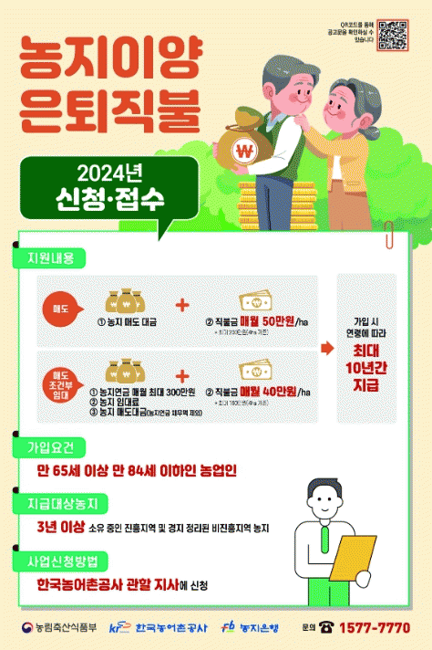 올해 사업에 참여한 경우 2024년 농지이양 면적과 2023년 농지이양 면적에 대해 직불금을 받을 수 있게 됐으며 앞으로 영농은퇴계획을 세워 2년에 걸쳐 농지를 매도하는 경우에도 사업에 참여할 수 있게 됐다.