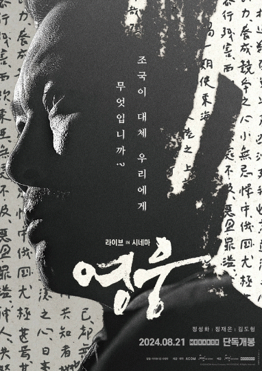 우리가 알지 못했던 안중근 의사의 마지막 1년을 풍성한 음악과 탄탄한 서사, 배우들의 뜨거운 열연으로 그려낸 대한민국 대표 오리지널 뮤지컬 필름 '영웅: 라이브 인 시네마'는 메가박스에서 절찬 상영 중이다.