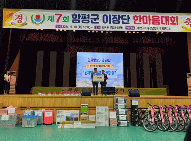 함평군 관계자는 “지난 10일 열린 제7회 함평군 이장단 한마음대회 중, 전국이통장연합회 함평군지회가 함평군 인재양성기금에 500만 원을 기탁했다”고 밝혔다.