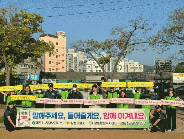 이번 캠페인은 목포시정신건강복지센터와 상동행정복지센터, 상동파출소, 상동주공3단지 관리사무소가 동참해 자살예방을 위한 범사회적 분위기를 조성했다.