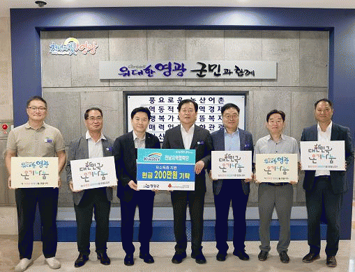 김정섭 영광군수 권한대행은 “매년 나눔을 통해 사회적 책임을 다하는 한국수자원공사 전남지역협력단에 감사드리며, 이번 추석에는 여러 기업과 단체 등의 소중한 기부행렬이 이어지고 있어 이런 소중한 기부금품을 어려운 이웃과 사회복지 시설에 골고루 전달하여 군민 모두가 가슴 따뜻한 명절을 보낼 수 있도록 최선을 다하겠다.”라고 말했다.