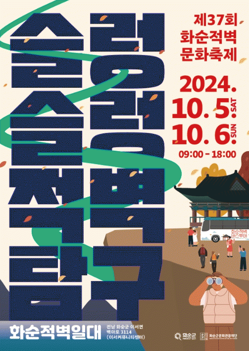 화순적벽 망향정, 망미정 일대와 이서커뮤니티센터에서 펼쳐지는 이번 축제는 ‘자연과 문화가 어우러진 화순적벽을 슬렁슬렁 돌아다니며 즐겨보자~!’라는 뜻을 지닌 ‘슬렁슬렁 적벽탐구’로 진행된다.