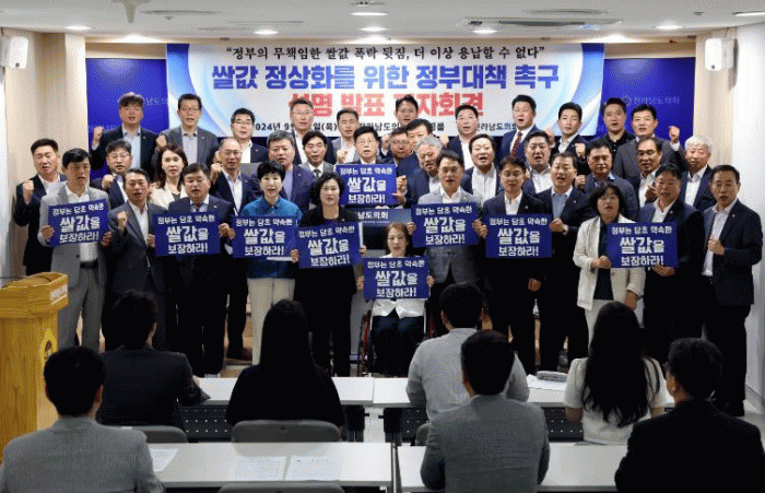 이번 성명을 발표한 전남도의회 김문수 농수산위원장(더불어민주당·신안1)은 “본격적인 수확기가 도래했지만 쌀값은 10개월째 하락세를 면치 못하고 있으며, 80kg당 17만 원 선까지 추락했다”고 표명하며, “정부가 작년도 공공비축 매입 물량을 축소한 결과, 농협들이 과도한 재고를 떠안게 되었고 이는 결국 쌀값 폭락의 원인이 됐다”며 정부의 정책 실패를 지적했다.