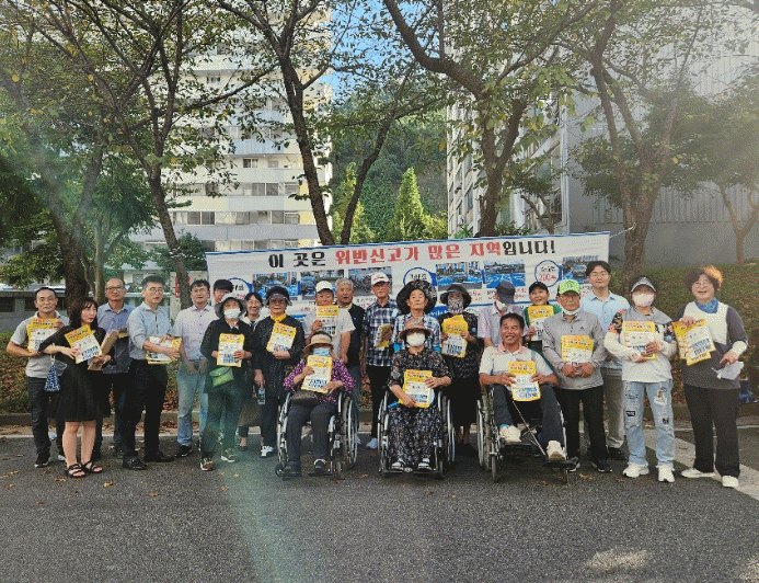 이날 캠페인은 이런 현실을 바꾸기 위해 마련됐고, 행사 참가자들은 홍보물을 주민에게 나눠주며 장애인전용주차구역을 지켜줄 것을 당부했다. 아울러 현대삼호2차아파트 관리사무소의 협조를 얻어 관련 현수막도 게시했다.