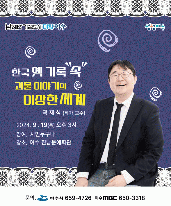 9월 여수아카데미에는 숭실사이버대학교 교수인 곽재식 작가가 강사로 나서 ‘한국 옛 기록 속 괴물 이야기의 이상한 세계’를 주제로 강연할 예정이다.