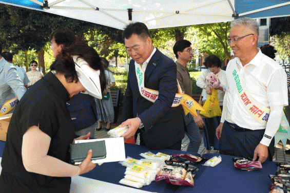 캠페인에서는 전남 10대 고품질 브랜드쌀인 무안 ‘황토랑쌀’과 가래떡을 나눠 주며 청정 자연환경에서 자라 고유의 맛과 풍미를 자랑하는 무안쌀을 적극 홍보했다.