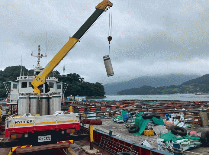 이에 돌산읍, 남면, 화정면 등 해상가두리 양식장 10개소 33개 어가에 액화산소통 61대를 보급할 예정이다.