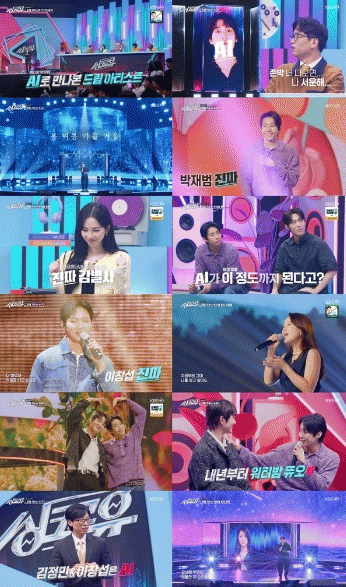 반면 이적은 “존박 씨는 어제 같이 있었는데도 얘기 안 했다. 나오면 저 친구의 어떤 말도 믿을 수 없다”라며 절연 선언에 나서더니, 백지영의 무대에는 “AI가 음까지 일부러 벗어나게 한다면 저는 이 프로그램 안 하겠습니다”라며 ‘극단적 추리’에 나서 좌중을 웃음바다로 만들었다. 상상도 못한 반전 조합인 박재범의 ‘Hype Boy’ 무대에는 모두가 흠뻑 빠져들었다.