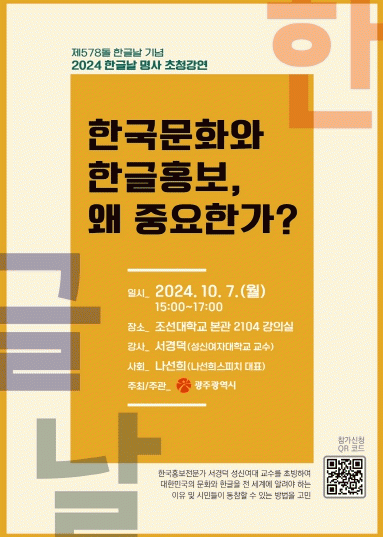 김성배 문화체육실장은 “한글날을 기념하는 이번 행사를 통해 많은 시민이 한글의 소중함을 느끼고, 우리말에 대한 자긍심을 고취하는 시간이 될 것으로 기대한다”며 “시민 여러분의 많은 관심과 참여를 바란다”고 말했다.