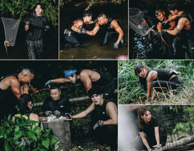 제작진이 공개한 스틸 컷에서는 성별도, 나이도 모두 잊은 채 오직 ‘생존’을 위해 분투 중인 ‘생존왕’ 후보들이 포착됐다. 특전사 출신으로 20대를 야외 예능에 바친 ‘야생 황태자’ 이승기는 살아 펄떡이는 장어를 잡은 채 활짝 웃고 있다.