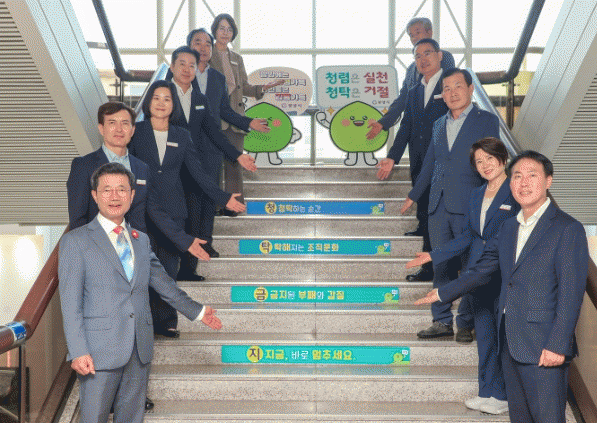 최근 광양시는 청렴에 대한 의지를 다지기 위해 공무원과 민원인의 출입이 많은 청사 중앙계단에 청렴 문구 스티커를 부착해 청렴 계단을 조성했다.