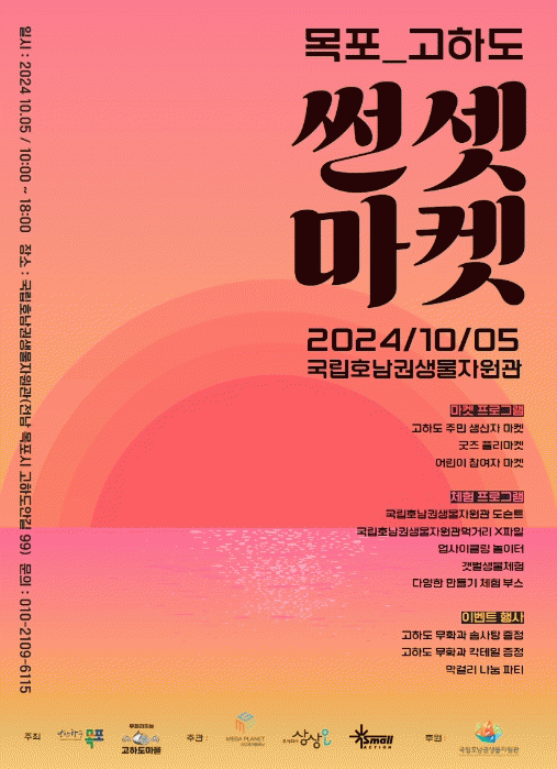 시 관계자는 “이번 썬셋마켓은 주민들이 함께 지역의 특산물과 문화를 직접 선보이는 뜻깊은 자리로 고하도만의 특색을 알리고 주민들의 경제적 자립을 돕는 기회가 될 것이라며, 방문객들의 많은 관심과 참여를 부탁한다”고 말했다.
